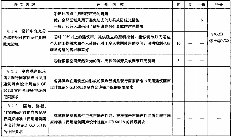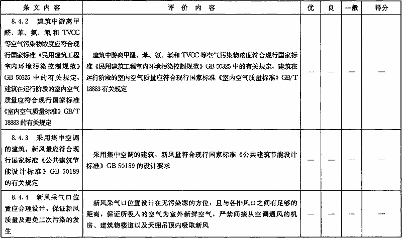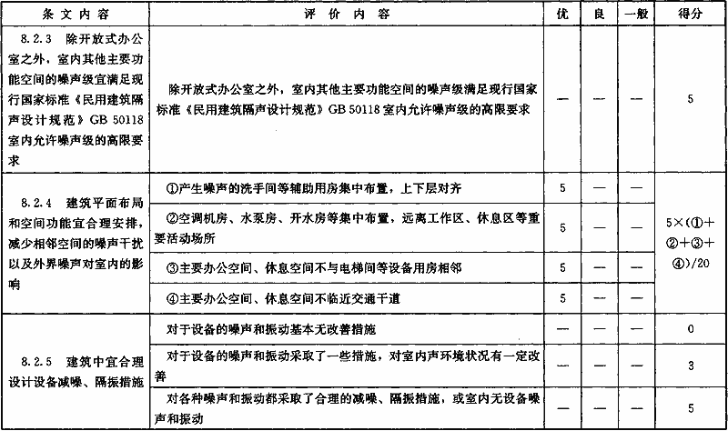 表B.0.5 “室內(nèi)環(huán)境質(zhì)量”部分第三級(jí)評(píng)價(jià)指標(biāo)分值設(shè)置
