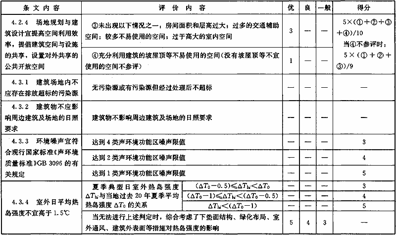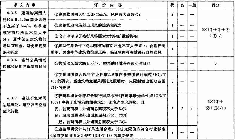 表B.0.1 “節(jié)地與室外環(huán)境”部分第三級(jí)評(píng)價(jià)指標(biāo)分值設(shè)置