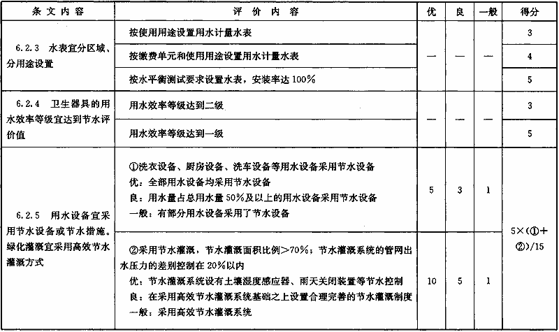 表B.0.3 “節(jié)水與水資源利用”部分第三級(jí)評(píng)價(jià)指標(biāo)分值設(shè)置
