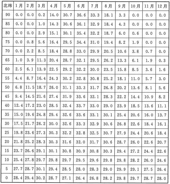 表A 可能的總輻射日曝輻量[MJ/(m2·d)]
