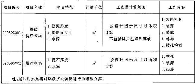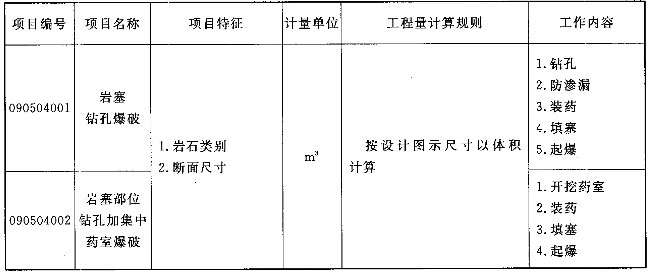 表E.4 水下巖塞爆破工程(編碼:090504)