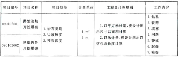 表A.2 預(yù)裂爆破工程(編碼:090102)