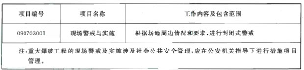 表G.3 爆破現(xiàn)場(chǎng)警戒與實(shí)施措施項(xiàng)目(編碼:090703)