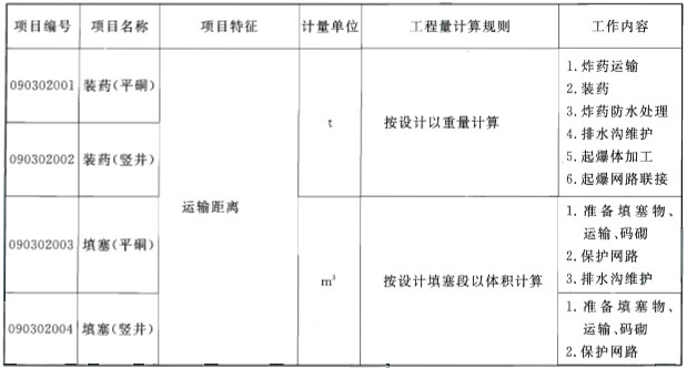 裝藥填塞工程工程量清單項(xiàng)目設(shè)置、項(xiàng)目特征描述的內(nèi)容、計(jì)量單位及工程量計(jì)算規(guī)則,應(yīng)按表C.2的規(guī)定執(zhí)行。