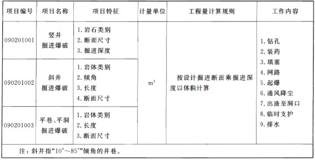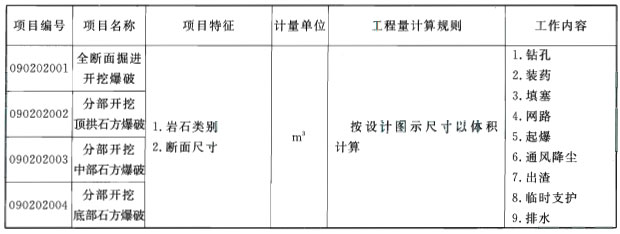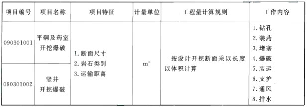 表B.1 井巷掘進(jìn)爆破工程(編碼:090201)