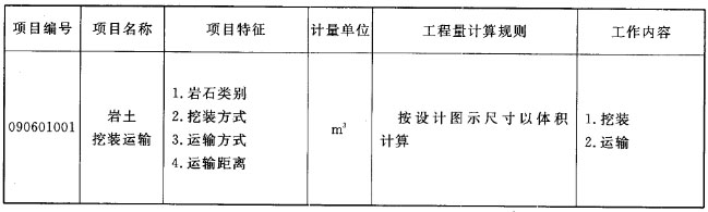 巖石挖裝運(yùn)輸工程工程量清單項(xiàng)目設(shè)置、項(xiàng)目特征描述的內(nèi)容、計(jì)量單位及工程量計(jì)算規(guī)則,應(yīng)按表F.1的規(guī)定執(zhí)行。