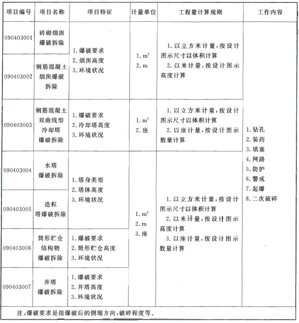 表D.3 構(gòu)筑物爆破拆除工程(編碼:090403)