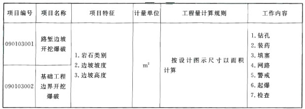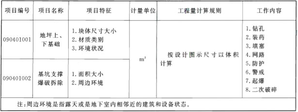 表D.1 基礎(chǔ)爆破拆除工程(編碼:090401)