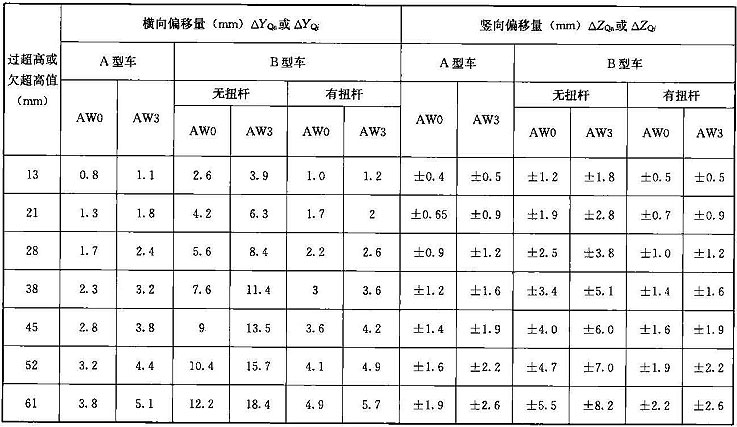 表D.0.2-3 過(guò)超高或欠超高引起的車輛限界加寬或加高量