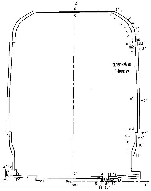 限定車輛運(yùn)行及軌道區(qū)周圍構(gòu)筑物超越的輪廓線,分車輛限界、設(shè)備限界和建筑限界。