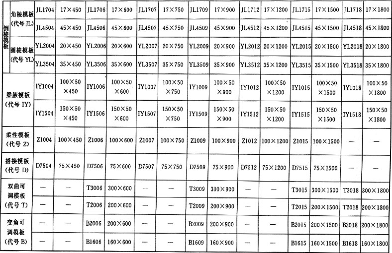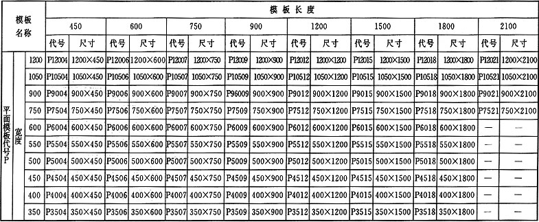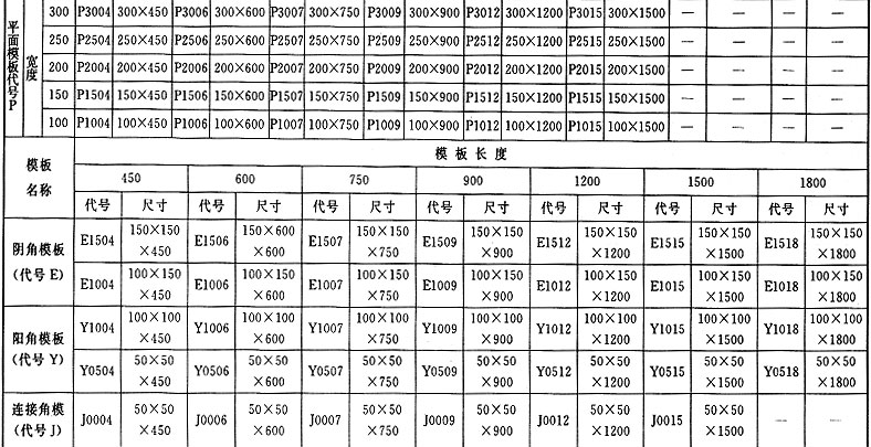 表C 鋼模板規(guī)格編碼(mm)