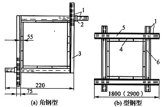 1—插銷;2—限位器;3—夾板;4—模板;5—型鋼A;6—型鋼B