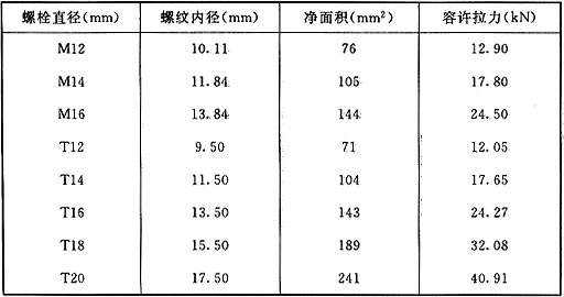 E.0.2 對拉螺栓承載能力應(yīng)按表E.0.2選用。
