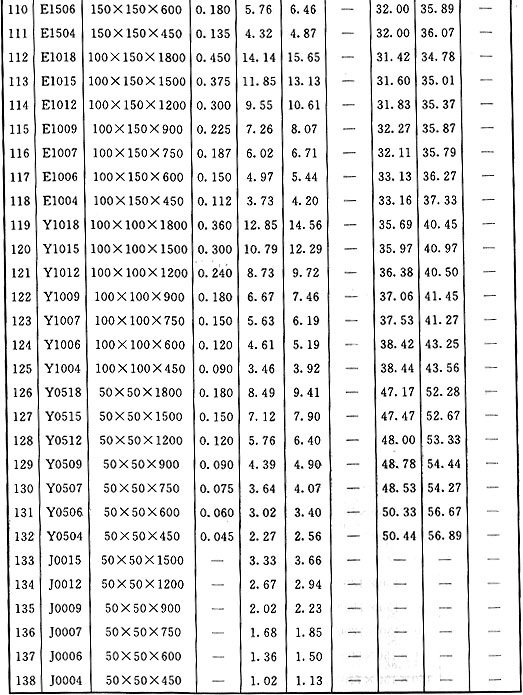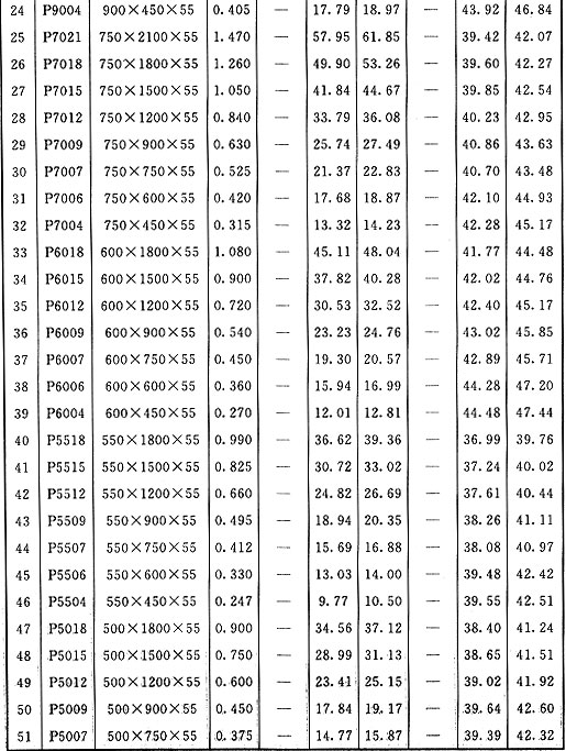 表D 組合鋼模板面積、質(zhì)量換算