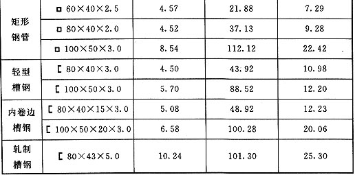 表E.0.6 鋼楞截面特征