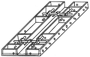 由鋼模板和配件兩大部分組成。鋼模板的肋高為55mm,寬度、長度和孔距采用模數(shù)制設(shè)計(jì)。鋼模板經(jīng)專用設(shè)備壓軋成型并焊接,采用配套的通用配件,能組合拼裝成不同尺寸的板面和整體模架。組合鋼模板包括寬度為100mm~300mm,長度為450mm~1500mm的組合小鋼模;寬度為350mm~600mm,長度為450mm~1800mm的組合寬面鋼模板和寬度為750mm~1200mm,長度為450mm~2100mm的組合輕型大鋼模。