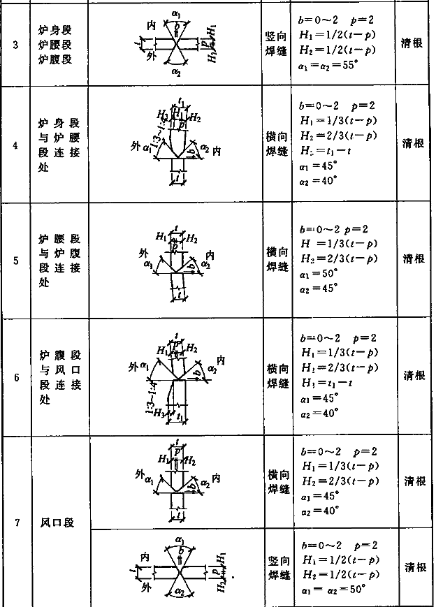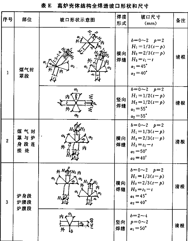 附錄E 高爐殼體結(jié)構(gòu)全焊透坡口形狀和尺寸