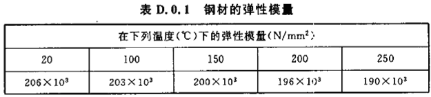 D.0.1殼體結(jié)構(gòu)在不同溫度下鋼材的彈性模量應(yīng)按表D.0.1采用。