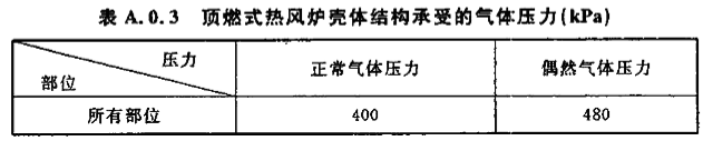A.0.2內(nèi)燃式熱風(fēng)爐殼體結(jié)構(gòu)承受的氣體壓力,可按表A.0.2采用。