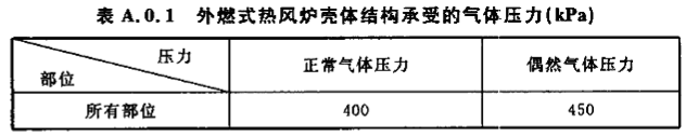 A.0.1外燃式熱風(fēng)爐殼體結(jié)構(gòu)承受的氣體壓力,可按表A.0.1采用。