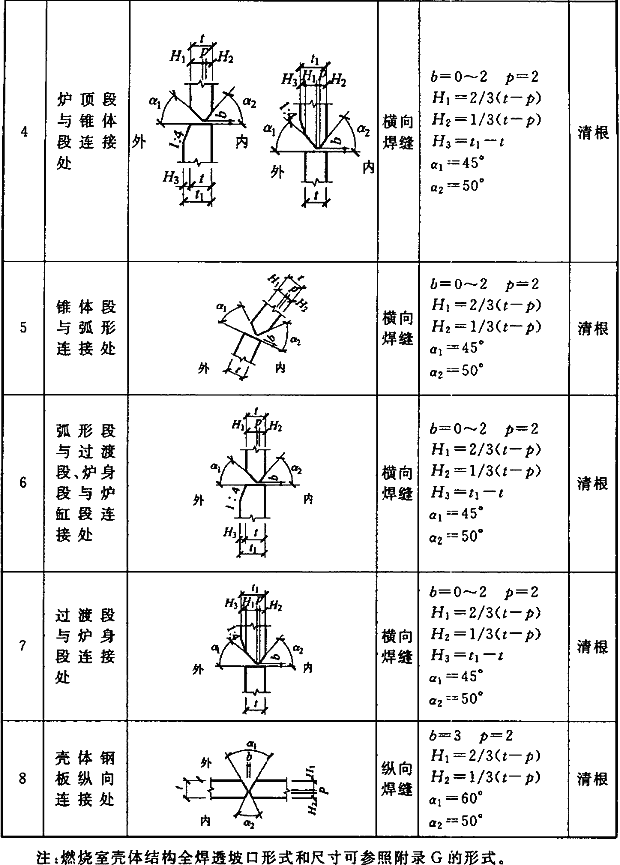 附錄F 內(nèi)燃式熱風(fēng)爐殼體結(jié)構(gòu)全焊透坡口形狀和尺寸