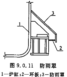 9.0. 11 熱風(fēng)爐地腳錨栓在熱風(fēng)爐烘爐后,宜加設(shè)防雨罩(圖9.0.11)。