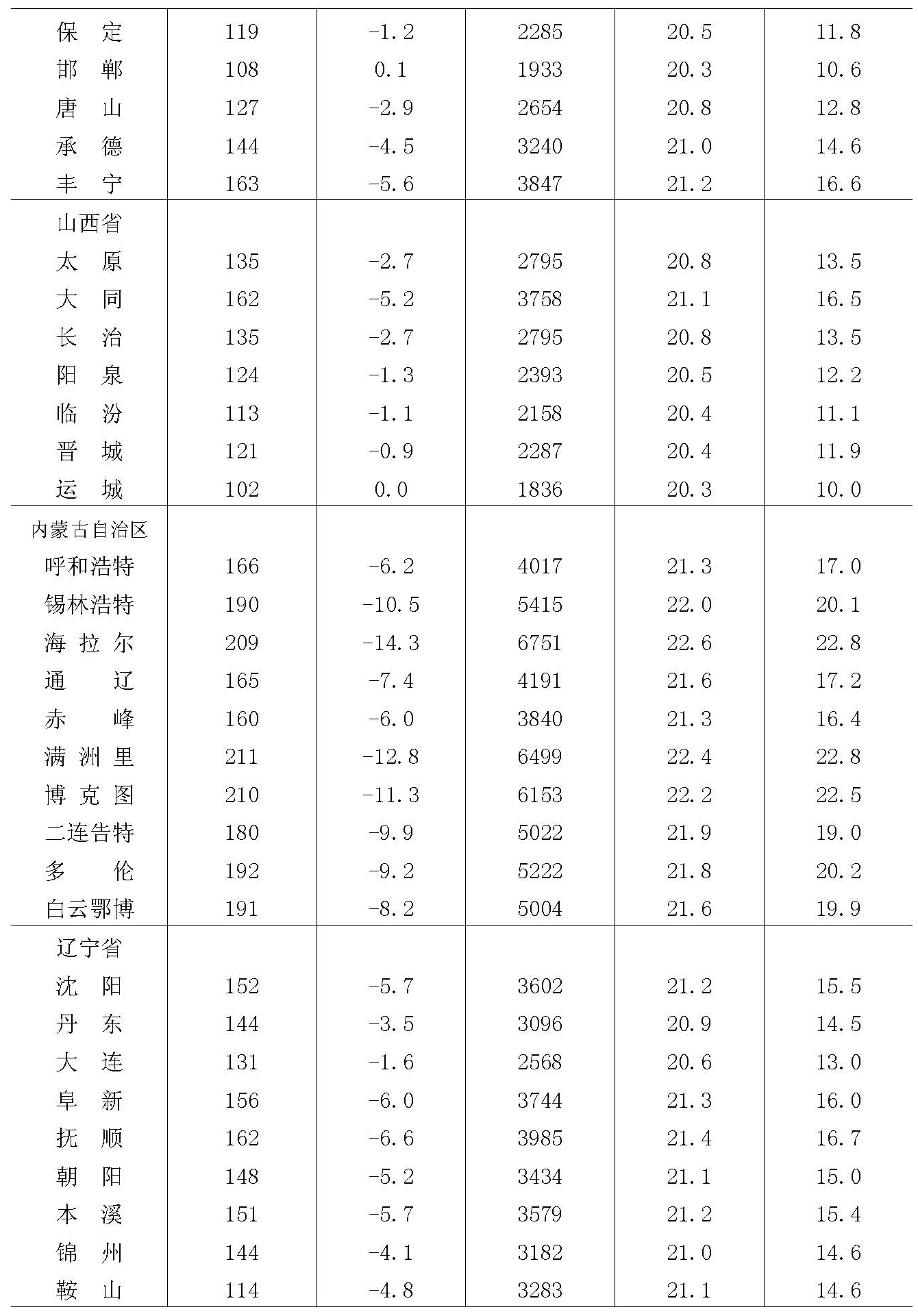 附錄A 全國(guó)主要城鎮(zhèn)采暖期有關(guān)參數(shù)及建筑物耗熱量、采暖耗煤量指