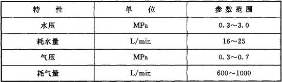 注:表中流量是在0.1MPa~0.3MPa水壓及0.3MPa~0.7MPa氣壓下的數(shù)值。射程是水壓為0.2MPa時的數(shù)值。YA、YB型為單孔噴嘴,其余型號是多孔噴頭。
