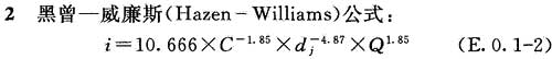 E.0.1 常用管道沿程水頭損失計算可采用下列公式: