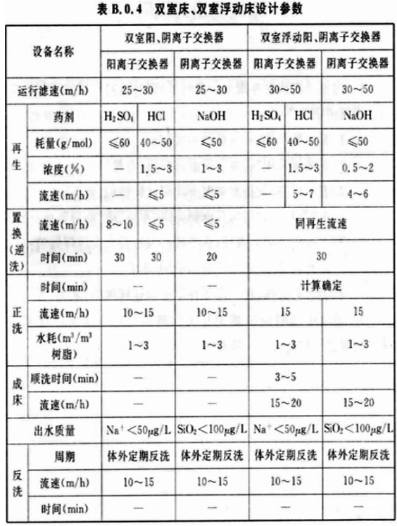 B. 0. 4 雙室床、雙室浮動(dòng)床離子交換器的設(shè)計(jì)宜符合表B. 0. 4的規(guī)定。
