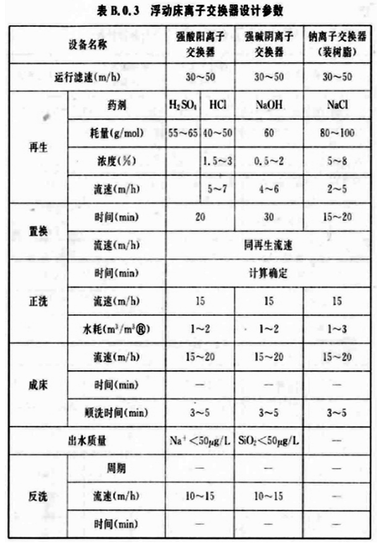 B. 0. 3 浮動(dòng)床離子交換器的設(shè)計(jì)宜符合表B. 0. 3的規(guī)定。
