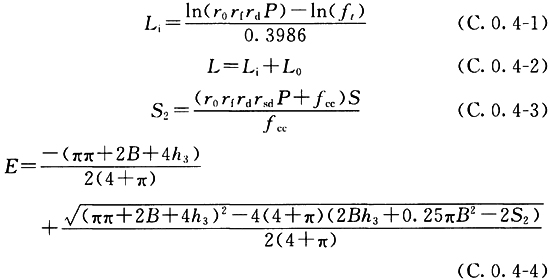 C.0.4 承受水壓大于1.6MPa的倒截錐形防水閘門(墻)硐室(本規(guī)范圖C.0.1-3),墻體尺寸可按下列公式計算: