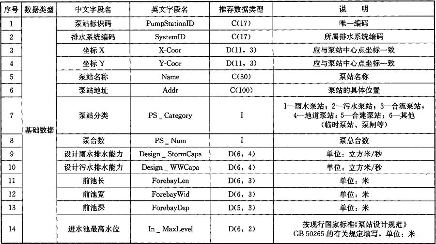 A.0.7 泵站數(shù)據(jù)應(yīng)符合表A.0.7的規(guī)定。