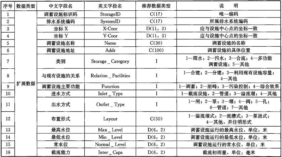 表A.0.9 調(diào)蓄設(shè)施數(shù)據(jù)