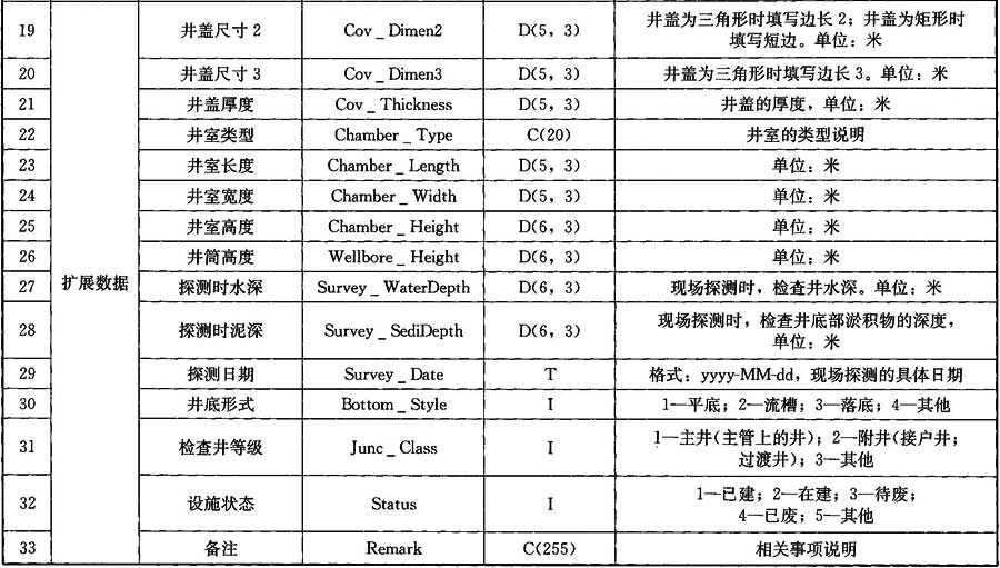 表A.0.3 檢查井?dāng)?shù)據(jù)