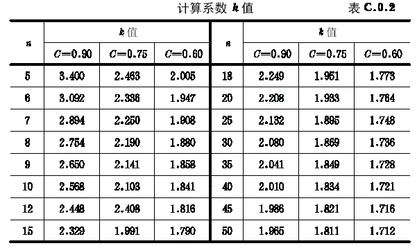 C——檢測(cè)所取的置信水平,對(duì)鋼材,可取C=090;對(duì)混凝土和木材,可取C=0.75;對(duì)砌體,可取C=0.60。