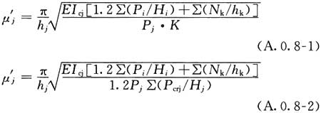 Pcrj——按傳統(tǒng)方法計算的框架柱的臨界荷載,其計算長度系數(shù)可按式(A.0.1-2)計算。