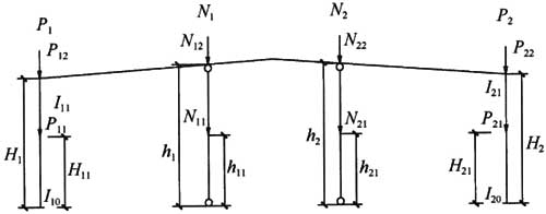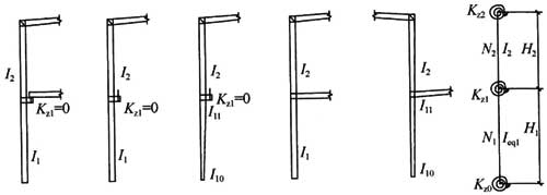 3 當(dāng)搖擺柱的柱子中間作用有豎向荷載時,可考慮上、下柱段的相互作用,決定各柱段的計算長度系數(shù)。