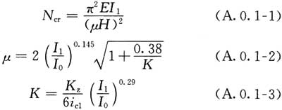 A.0.1 小端鉸接的變截面門式剛架柱有側(cè)移彈性屈曲臨界荷載及計算長度系數(shù)可按下列公式計算: