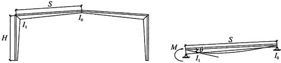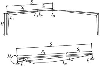 圖A.0.3-2 剛架梁為二段變截面及其轉(zhuǎn)動剛度計算模型