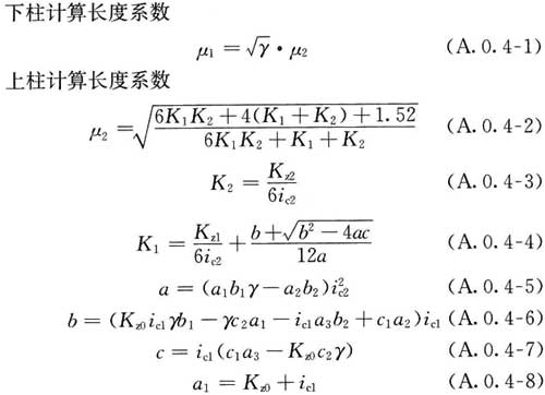 A.0.4 當(dāng)為階形柱或兩段柱子時,下柱和上柱的計算長度應(yīng)按下列公式確定: