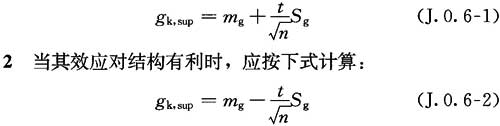 J.0.6 現(xiàn)場(chǎng)抽樣檢測(cè)材料或構(gòu)件自重的試樣,不應(yīng)少于5個(gè)。當(dāng)按檢測(cè)的結(jié)果確定材料或構(gòu)件自重的標(biāo)準(zhǔn)值時(shí),應(yīng)按下列規(guī)定進(jìn)行計(jì)算: