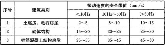 注:1 表列頻率為主振頻率,振動(dòng)速度為質(zhì)點(diǎn)振動(dòng)相互垂直的三個(gè)分量的最大值;