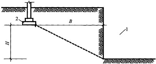 1-基坑或溝渠;2-建筑基礎(chǔ)