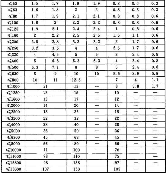 A.0.1 增安型電氣設(shè)備不同電位的導(dǎo)電部件之間的最小電氣間隙和爬電距離,應(yīng)符合表A.0.1的規(guī)定。