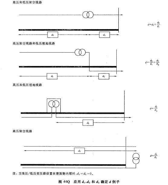 在低電壓配電線路的結(jié)構(gòu)中,其接地,絕緣水平和考慮到感應(yīng)耦合以及電阻耦合的現(xiàn)象將導(dǎo)致d值的不同的選擇。下面推薦的計(jì)算方法,通常為最不利的情況。