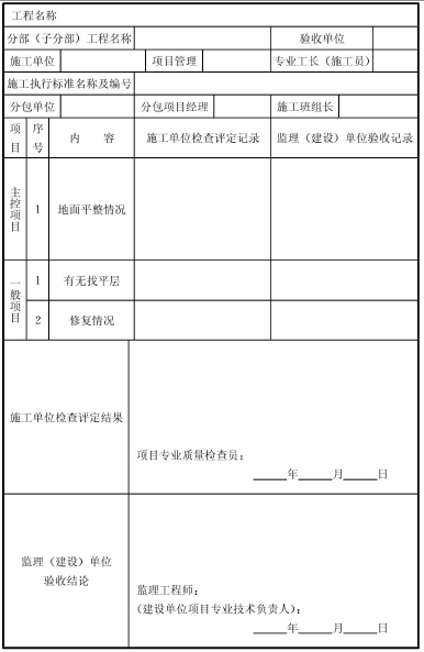 表F.0.2 安裝前原始工作面質(zhì)量檢驗(yàn)表