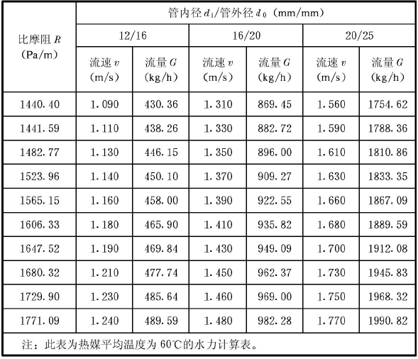 C.0.2 當(dāng)熱媒平均溫度不等于60℃時(shí),可由表C.0.2查出比摩阻修正系數(shù),并通過下列公式進(jìn)行修正。