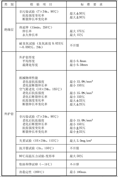 E.0.1 發(fā)熱電纜的電氣和機(jī)械性能應(yīng)符合表E.0.1的要求。