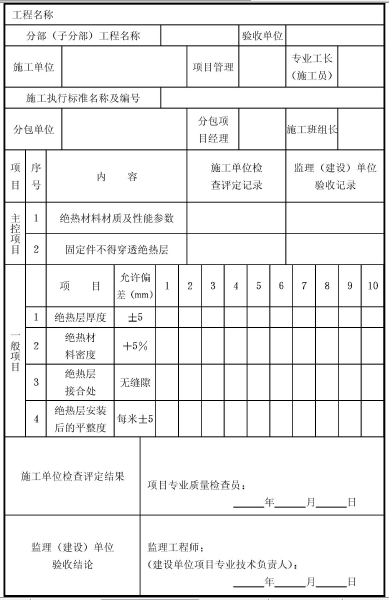表F.0.4 絕熱層安裝工程質(zhì)量檢驗(yàn)表